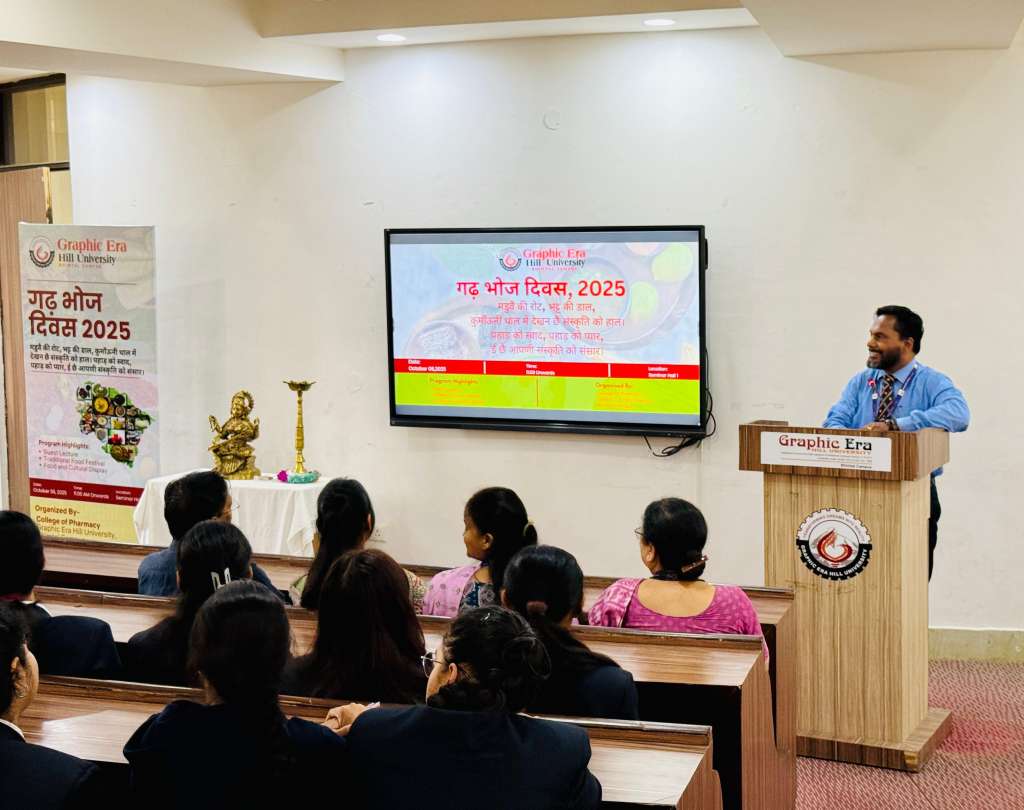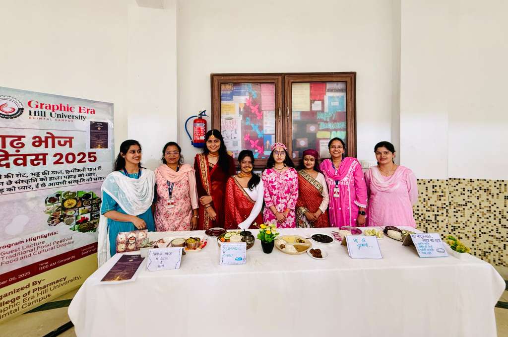 ग्राफिक एरा हिल विश्वविद्यालय, भीमताल परिसर में “गढ़ भोज दिवस” बड़े उत्साह और पारंपरिक अंदाज़ में मनाया गया। विश्वविद्यालय के कॉलेज ऑफ फार्मेसी द्वारा आयोजित इस कार्यक्रम का उद्देश्य उत्तराखंड की पारंपरिक पाक-परंपरा को प्रोत्साहित करना, संरक्षित रखना और विद्यार्थियों में अपने स्थानीय भोजन एवं संस्कृति के प्रति सम्मान और गर्व की भावना जागृत करना था।