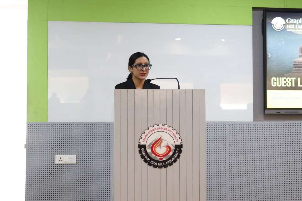 भीमताल। ग्राफिक एरा हिल यूनिवर्सिटी, भीमताल परिसर के स्कूल ऑफ मैनेजमेंट द्वारा स्पीक फाउंडेशन (Stimulating People for Education, Awareness & Knowledge) के सहयोग से “माइंडफुल लीडरशिप: एप्लाइंग बुद्धिस्ट प्रिंसिपल्स इन मैनेजमेंट” विषय पर एक इंटरएक्टिव सत्र का आयोजन 16 अक्टूबर 2025 को किया गया। यह कार्यक्रम भारत सरकार के संस्कृति मंत्रालय के सहयोग से आयोजित किया गया, जिसका उद्देश्य बीबीए और एमबीए विद्यार्थियों में आत्म-जागरूकता, भावनात्मक बुद्धिमत्ता और मूल्य-आधारित नेतृत्व को प्रोत्साहित करना था।